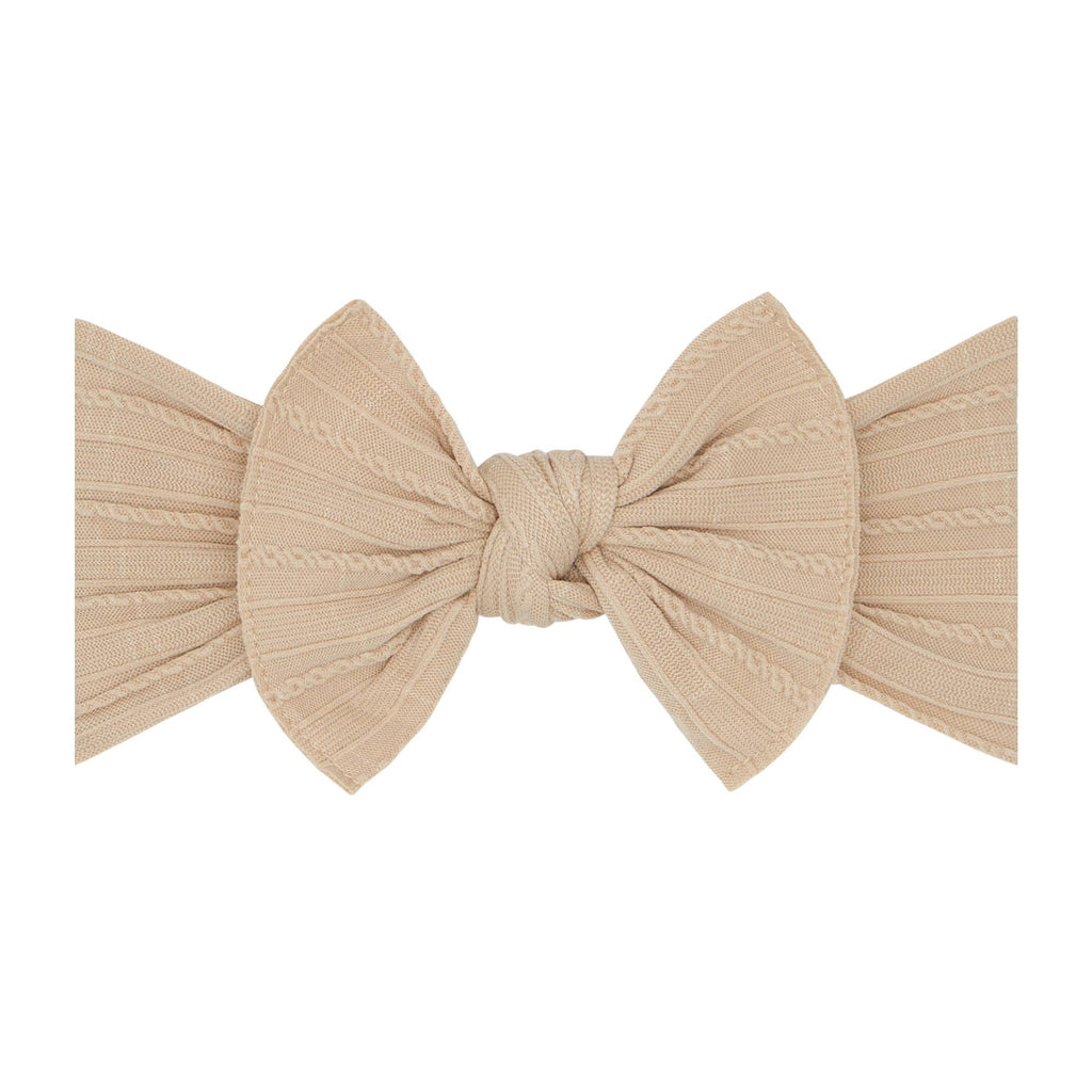 MADE IN THE USA. Cable knit design woven into the fabric makes it look like your favorite sweater. Limited seams on the headband means maximum stretch for ultimate comfort. Visible stitching adds detail and protects the integrity of the fabric; no holes were cut to turn the seams in. Extra little textured details showcase your eye for style. This style is sewn in two pieces for mix-and-matching to create a custom look. Each headband is hand sewn and tied by women in our local community.