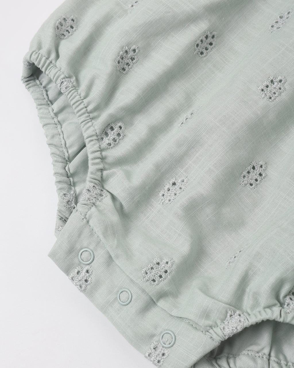 This beautiful eyelet romper is a sure summer staple for your little ones. With a sweet ruffle collar and bottom snaps for easy wear.