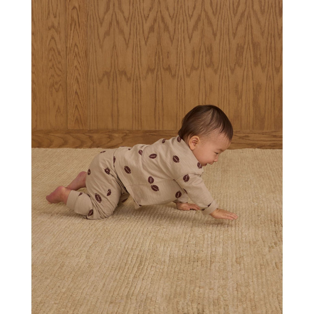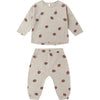 This comfortable cotton jersey set includes a relaxed long sleeve crewneck tee and dropped-crotch slouch pants. Shoulder snaps included on sizes 0–3M - 6–12M for easy changes.