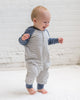 We took a classic Henley and gave it an adorable update. This romper is our go-to for fall play. With cozy ribbed cuffs and a snap closure for easy outfit changes, your babe will be wearing this every day.
