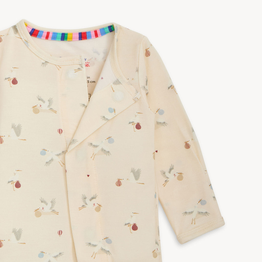 • Magnetic closures: magnets line the seam from the neck to upper thigh for sizes up to 0-3m & from neck to crotch for sizes 3-6m and up.