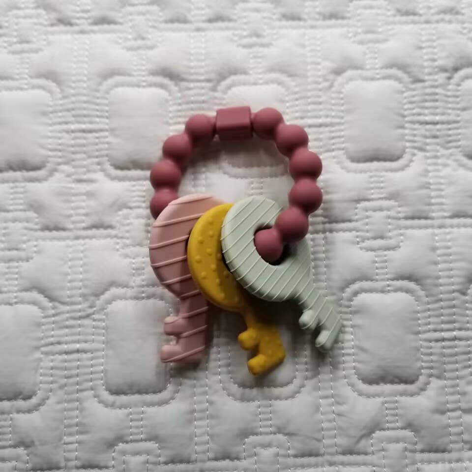 The Colorful Keys Rattle Clutching & Teething Toy in pink is a delightful companion for curious little hands. Its bright colors and gentle rattling sounds capture attention, while safe, textured surfaces provide soothing relief for teething gums. Lightweight and easy to grasp, this playful toy encourages sensory exploration and keeps babies happily entertained.