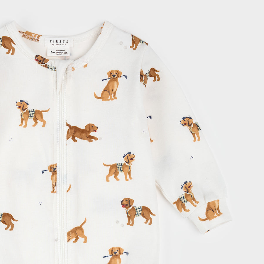 This adorable footed sleeper features our all-over Golf Pups print you’ll both love. Made from a silky-soft cotton-modal which stays soft after every wash, the sleeper offers a breathable comfort for peaceful snoozes before tee-off in the morning. Integrated feet keep toes tucked in softness while they play and wriggle and the two-way zip ensures fuss-free changes. It’s the perfect bedtime staple for little champions.