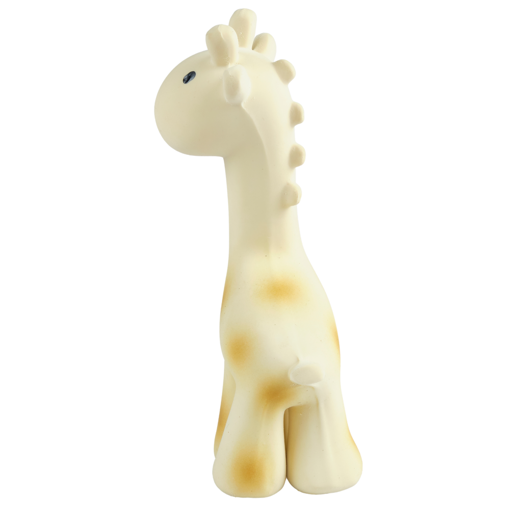 Made from all-natural organic rubber, this long-necked love from our My First Safari Collection is easy for tiny hands to grip. And when shaken it responds with a gentle sound that is sure to comfort your little ones.