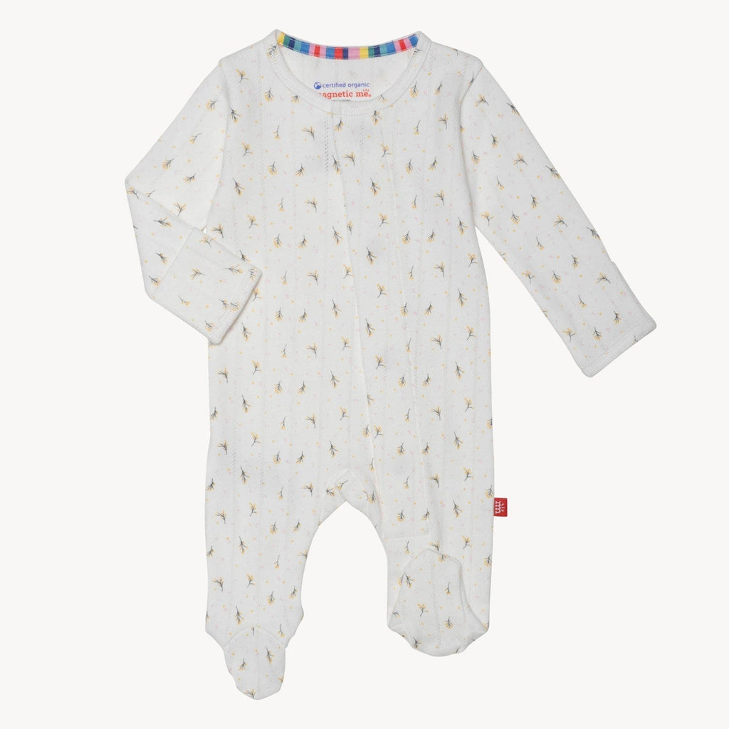 Magnetic Me's parent favorite footie is an everyday (and night) essential with magnetic closures that make dressing easy. magnets are quick, quiet, and a lifesaver for middle-of-the-night changes. GOTS certified organic cotton makes this baby wardrobe staple breathable and gentle on sensitive skin.
