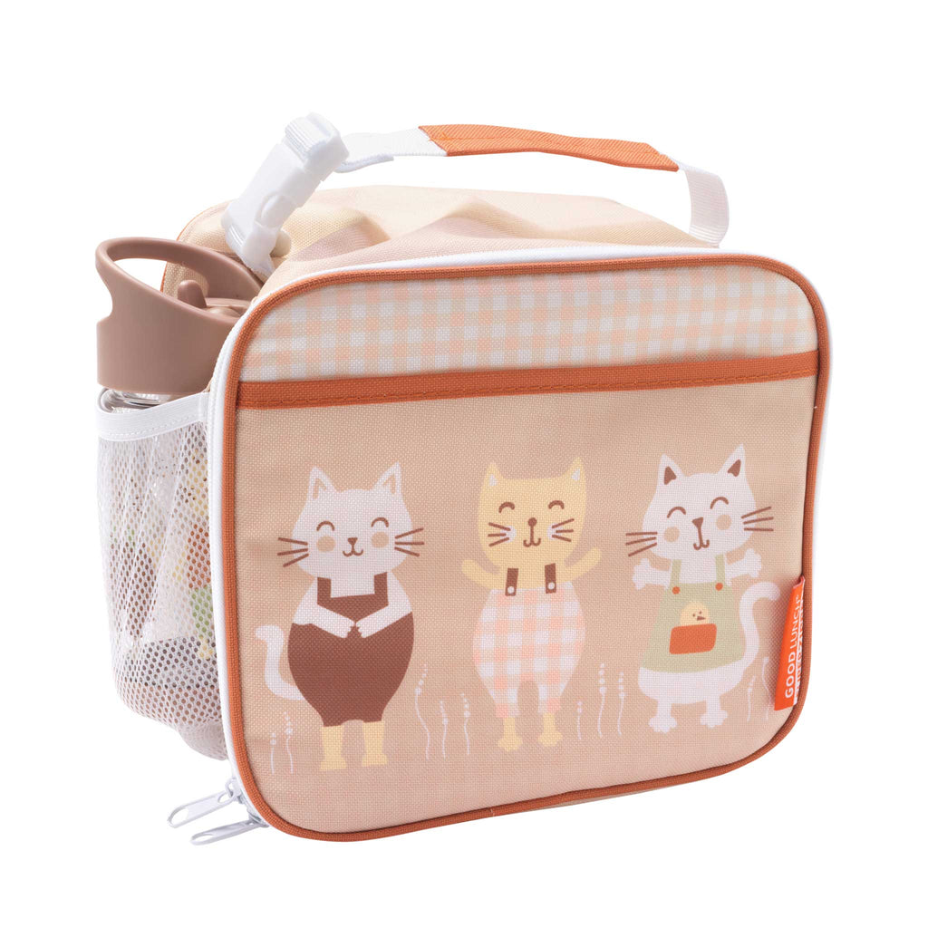 The Prairie Kitty Super Zippee Lunch Tote features kind kitties on the prairie on a wispy wheat background with a gingham border. The Super Zippee is sized just right for hungry little kids or parents and baby on the go! Great for days when you need to pack snacks, lunch and a water bottle. Think school, daycare, adventures and more! Size (inches): 9 w x 8 h x 5.50 d
