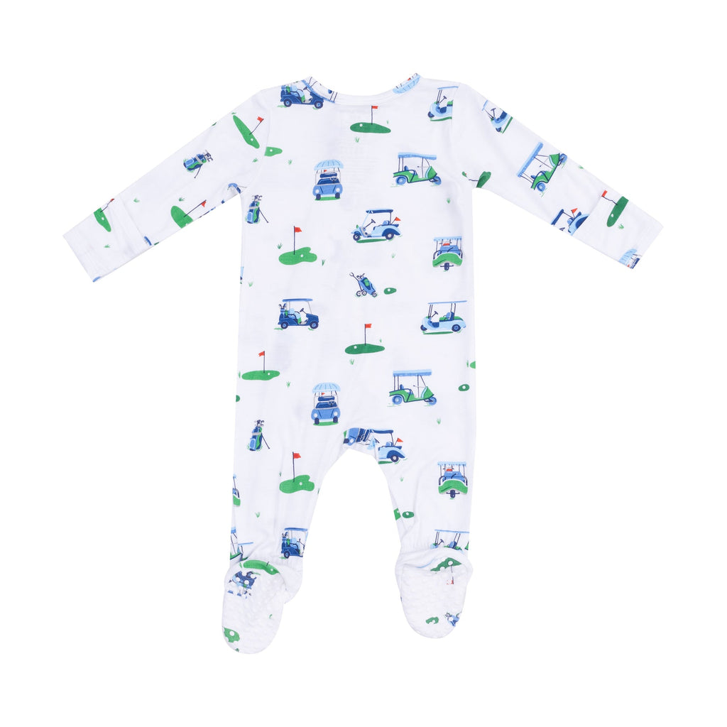 Two Way Zipper Footie (Blue Vintage Golf Carts)