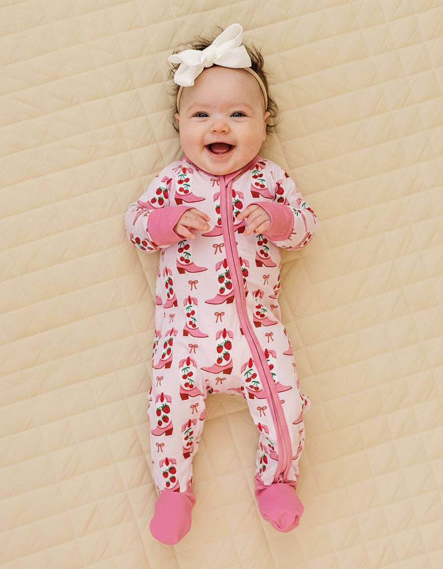 A playful zip romper with a fun Bootsberry Cowgirl print. Easy to put on and comfy to wear, it's perfect for little cowgirls who love Western adventures.