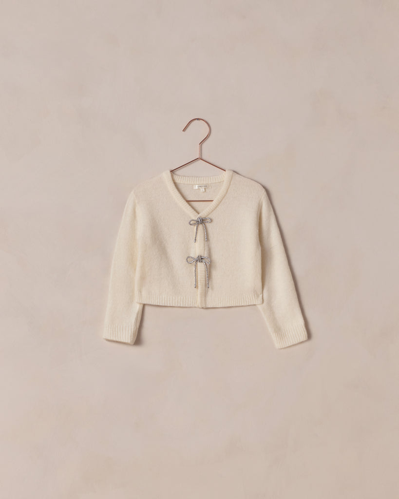 The Bow Cardigan is a sweet layering piece featuring a classic knit body with delicate bow details down the front. Designed for both comfort and charm, it pairs beautifully with holiday dresses or can be worn as a cozy statement piece on its own.