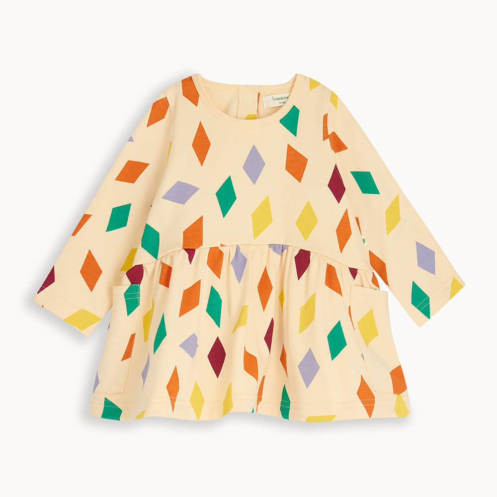 Combine cosy comfort and style with our long-sleeved diamond print baby and kids sweatshirt dress. Made from 100% GOTS certified organic cotton, this soft and breathable dress is gentle on delicate skin. Internally brushed fabric for extra warmth, press studs on baby sizes make dressing easy and the pockets are great for storing their treasures. This eco-friendly baby dress combines sustainability with adorable design. Ideal for everyday wear during the winter.