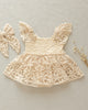 Our Margot Romper is full of delicate charm, featuring flutter sleeves, a softly gathered empire waist, smocking at the back, and a sweet square neckline with ruffle trim. Designed with comfort in mind, it includes elasticized leg openings and snap closures for easy changes—perfect for your littlest one’s special moments.