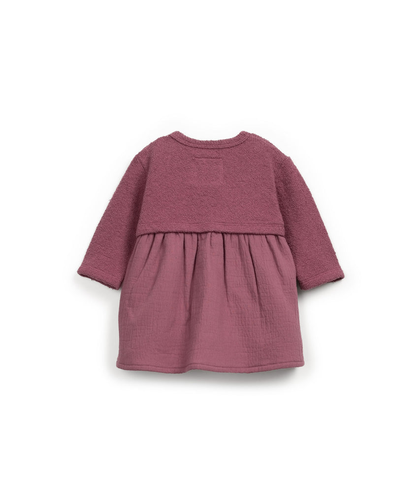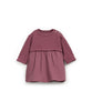 This dress is made from a jersey fabric in a mix of cotton, organic cotton, and regenerative cotton, in Dark Pink color. It features a round neckline, shoulder opening with coconut buttons, and a fitted waist detail.