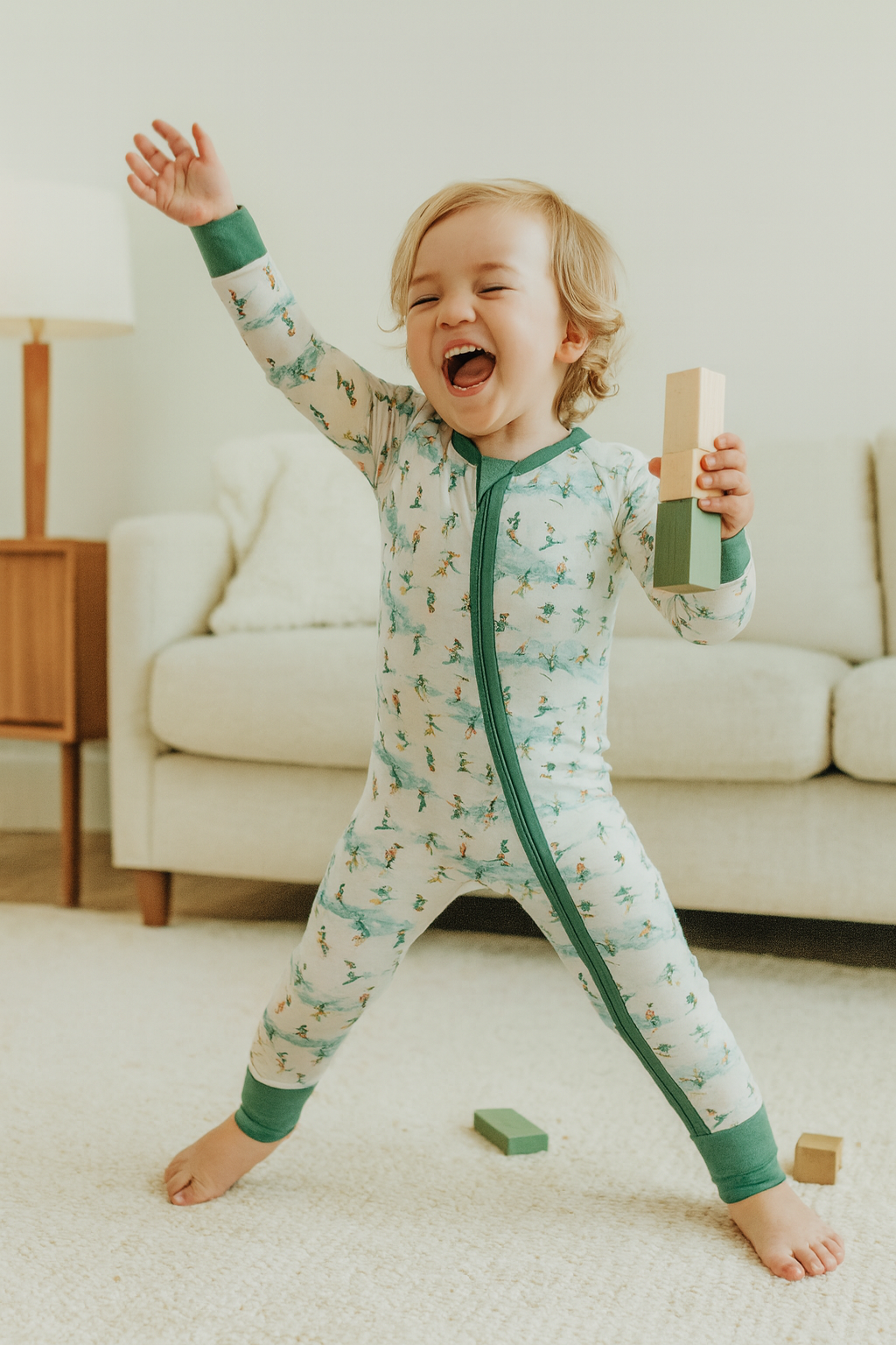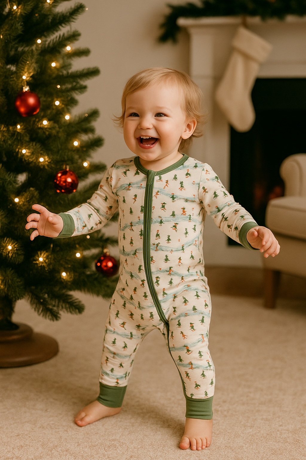 Soft, timeless and just the perfect amount of fun - the Polished Prints Winter 2-way convertible baby sleeper is a classic style for your little one. Featuring a fun winter wonderland ski pattern, this design brings a soft, fun, and elevated style that's loved year around. Made from 95% bamboo viscose with an added stretch, these 2-way convertible baby sleepers are lightweight, soft, and breathable for endless adventures, play, sleep and cuddling. Plus, the fun ski pattern is perfect for Christmas, winter, and beyond.