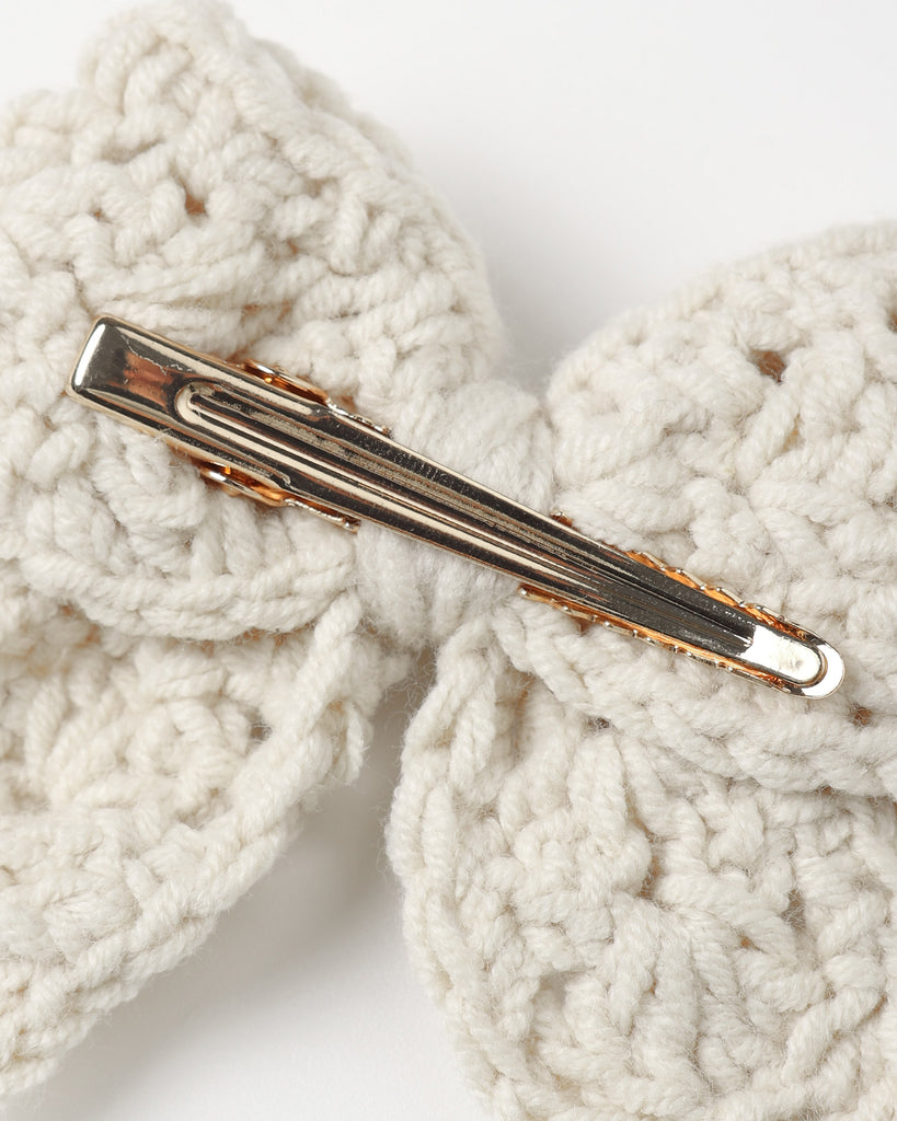 Crochet bow clips that are sweet, simple, and perfect for your little gals. Featuring our 'natural' hue.