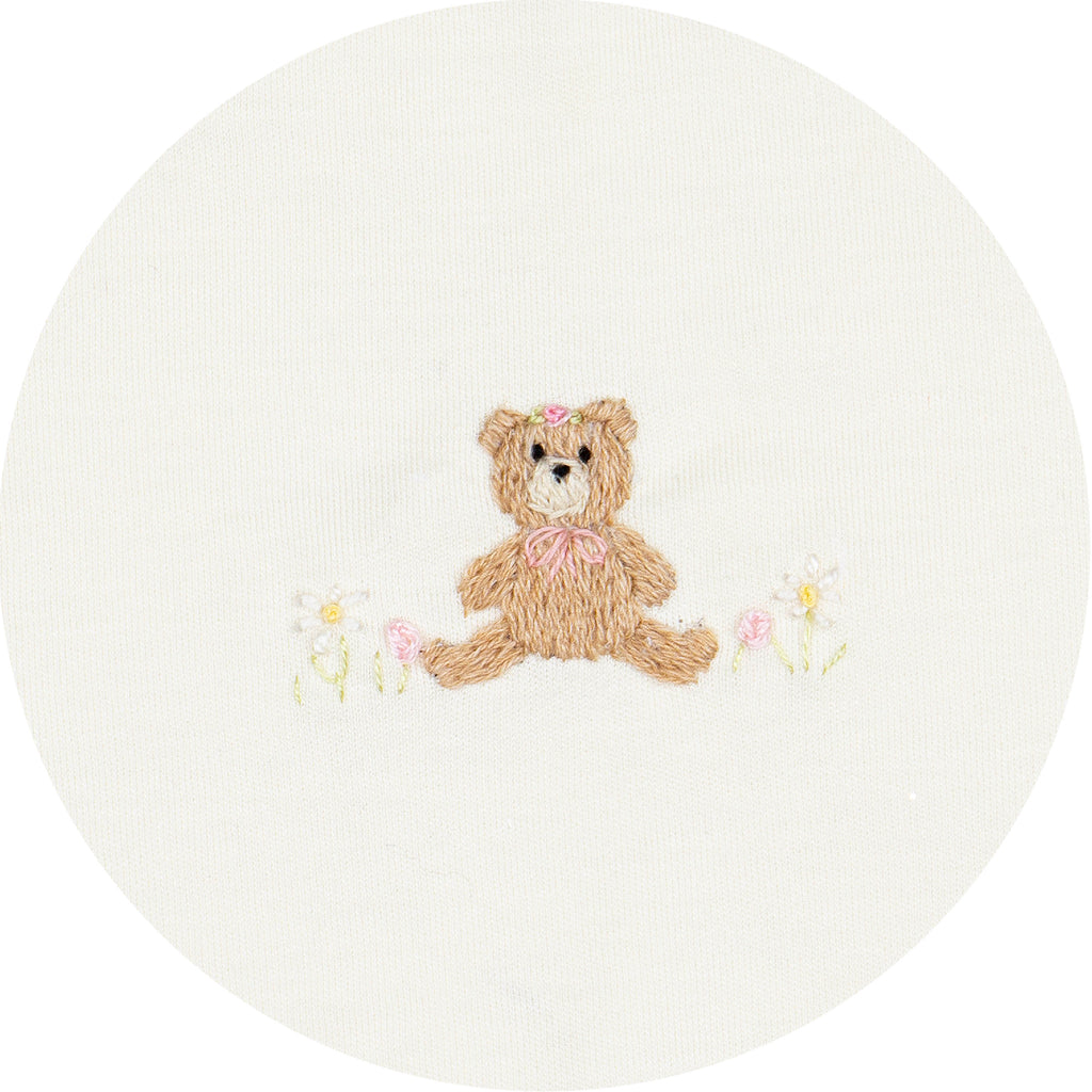 Sweet three-piece set with embroidered bears and flowers in pearl tones. Mix and match the pieces for endless outfit possibilities. Perfect for playtime and everyday wear!