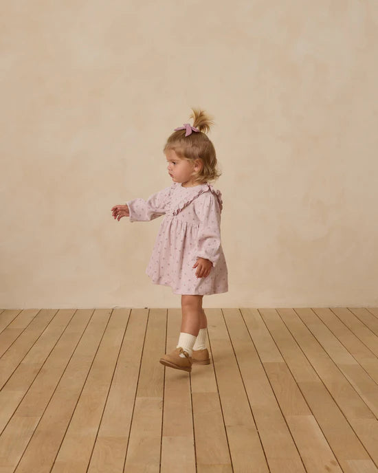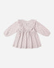 This long sleeve dress in our classic pointelle fabric features delicate V-ruffle detail, a button-back closure for easy changing, and matching bloomers for a sweet finishing touch.