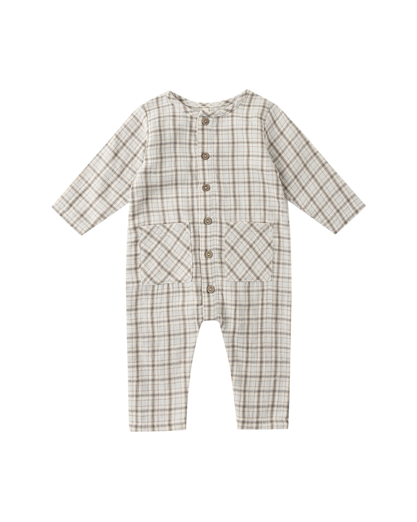 Made from soft organic cotton gauze, this darling jumpsuit features square patch pockets on the front and buttons down the center for easy changing - an everyday staple with timeless charm.
