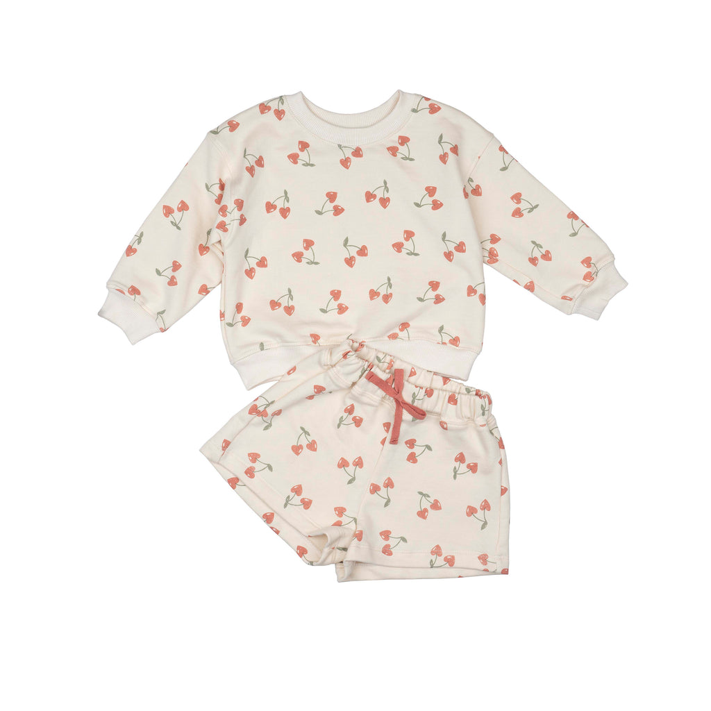 Soft and stylish Cherry Crush Sweatshirt Set for kids. This matching pair keeps little ones cozy and comfortable while adding fun cherry flair to their everyday look.