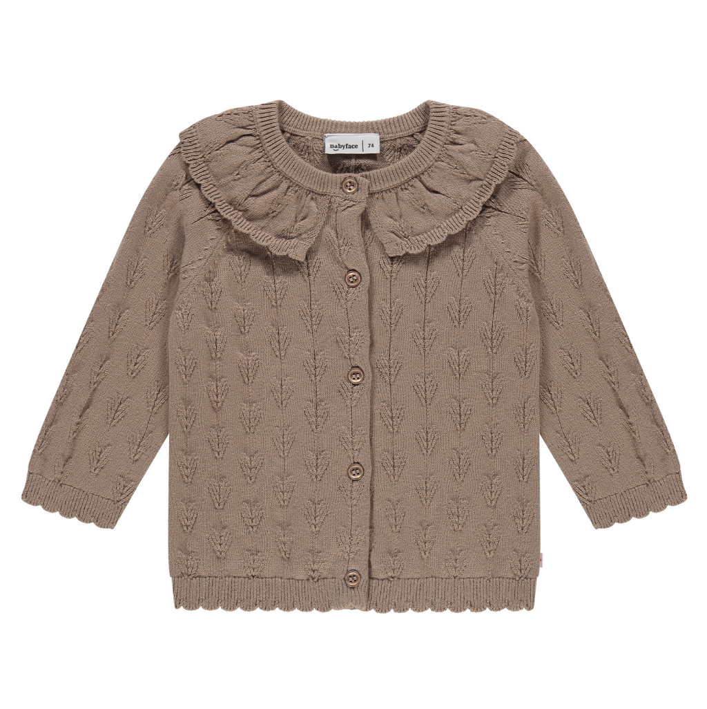 Wrap your little one in cozy charm with this Baby Girls Cardigan in warm sepia. Soft and snug, it’s perfect for layering on chilly days, adding a touch of playful style to every outfit.