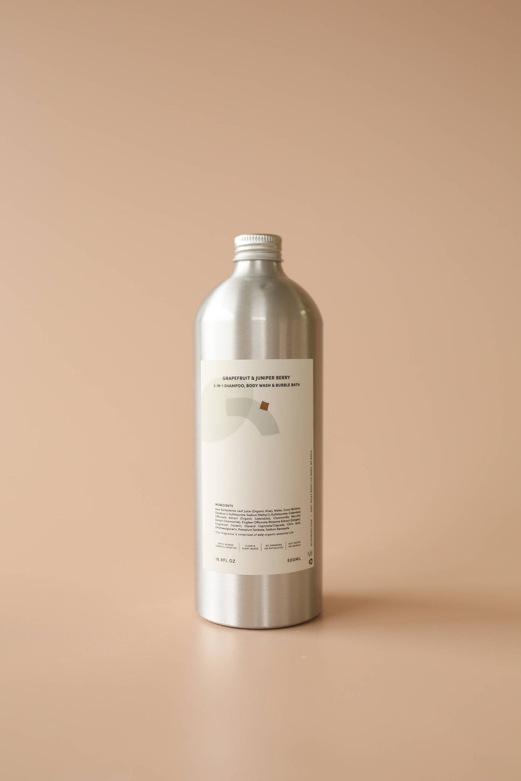 Grapefruit + Juniper Berry Body Bubble is our signature 3-in-1 formula: shampoo, body wash and bubble bath, aka the ultimate skin-loving multitasker now made in a REFILL size! These generous 16.9oz aluminum refills are crafted to fill your Body Bubble bottle over two times, helping to eliminate waste and reduce the need for additional packaging.