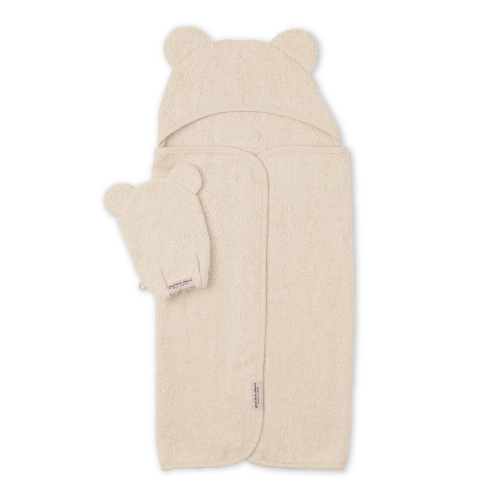 Splish splash! This set includes everything you need for baby’s bathtime. Featuring a cozy, ultra-soft hooded towel and coordinating wash mitt. Our absorbent terry fabric is made of OEKO-TEX® certified and sustainably sourced cotton and a recycled polyester that keeps 8 plastic bottles out of landfills.