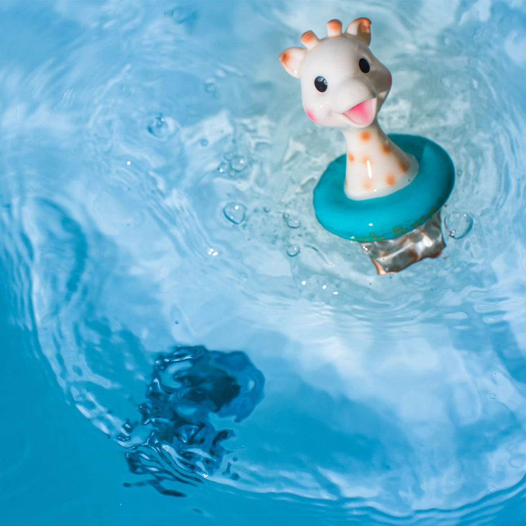 For lots of bath time fun and splashing! Here comes sophie la girafe again, this time as a floating, squirting toy for baby to play with in the bath. She squirts water when squeezed. Ships in blue and yellow.