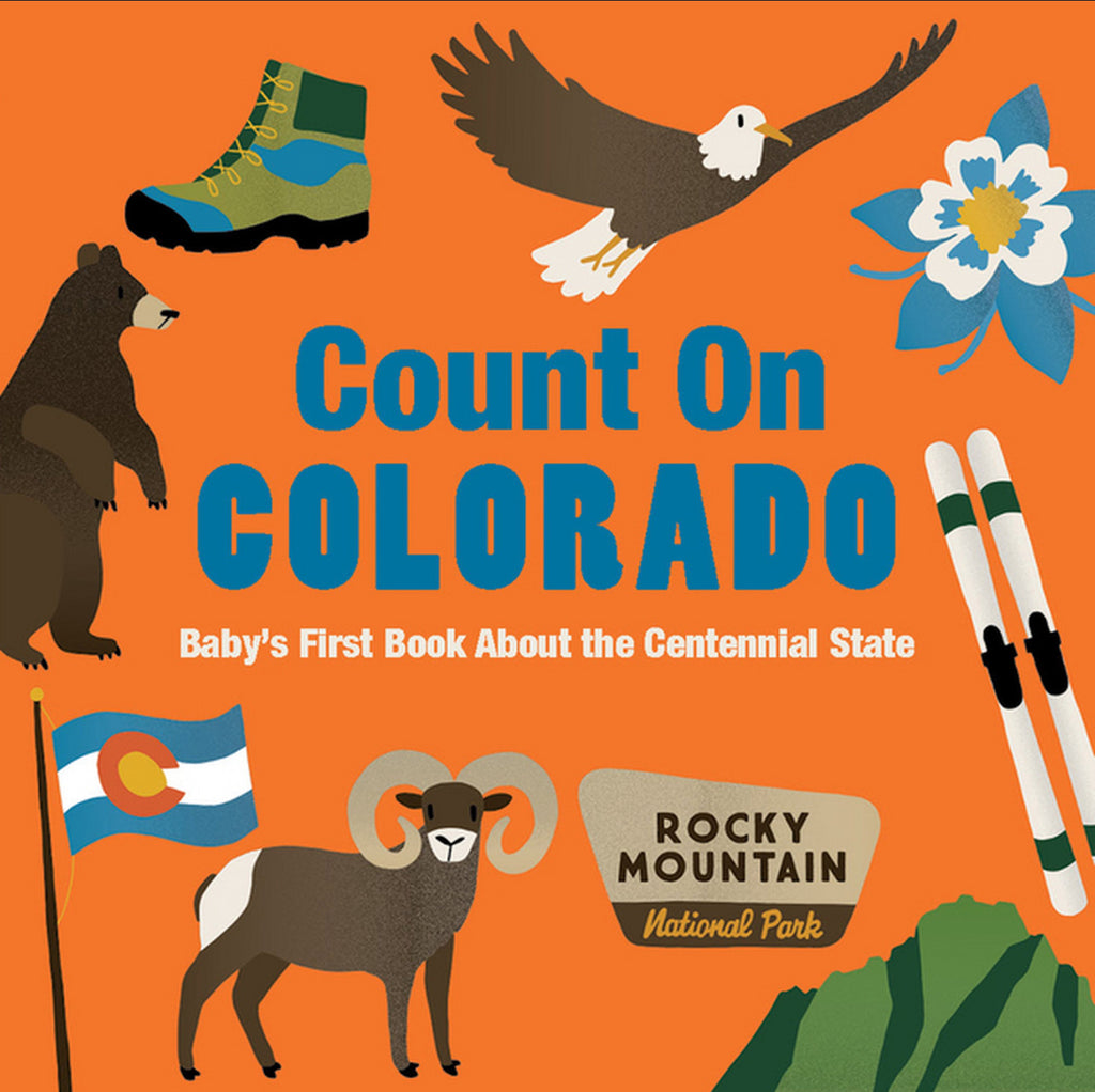 Covering everything from mountains to hiking boots, snowboards to bighorn sheep, this bright board book makes learning about Colorado fun. Illustrator Nicole LaRue’s charming, modern style depicts iconic Centennial State symbols for toddlers to count. A perfect baby gift or vacation souvenir, this fresh and contemporary take on Colorado is the perfect gift for little Coloradans and tiny tourists alike.