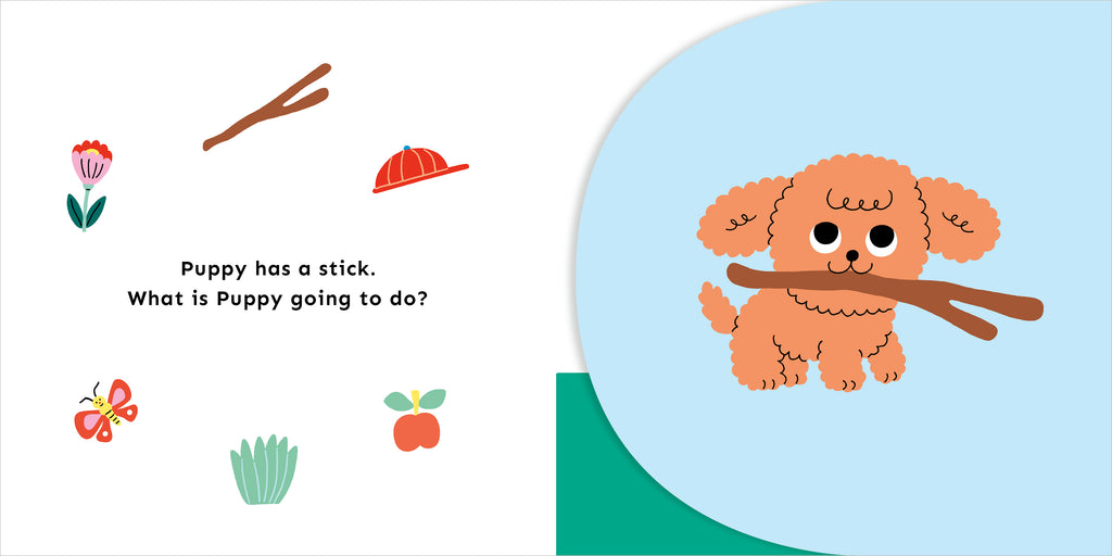 Little pups go on big adventures! Look at what each puppy is holding or playing with and see if you can you guess what they are about to do! Open the flap on each page to discover the answer in a delightful, colourful scene.