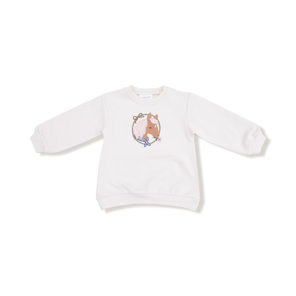 Bring a touch of equestrian whimsy to cozy days! Our Oversized Puff Sleeve Sweatshirt, crafted from soft French terry, features a sweet horse head applique for that extra bit of charm. This set is perfect for playtime, naps, and all the fall and winter fun in between.