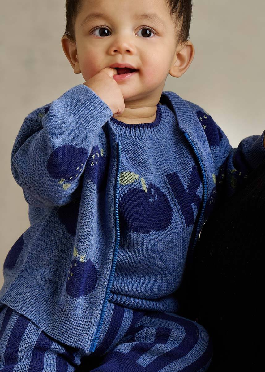 Wrap your little one in cozy charm with the Aymer Apple Knit Cardigan in Dusty Blue. This soft knit adds a playful touch to any outfit while keeping them comfortably warm. Perfect for layering on cool days, its gentle fabric and cute color make dressing up a breeze.