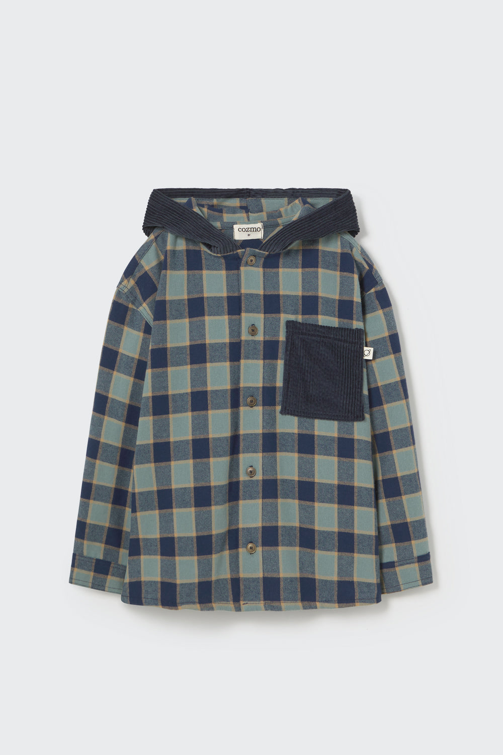 Check Flannel Hooded Shirt (Arctic Blue)
