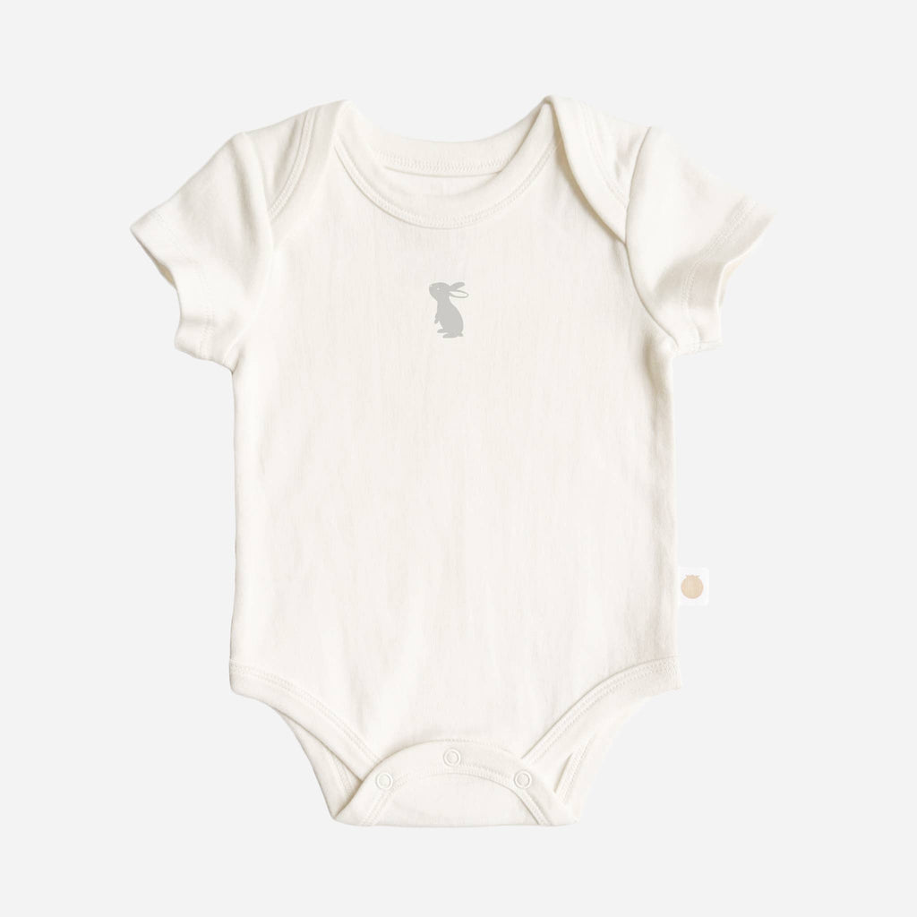 Complete your gift set this 100% Organic Cotton onesie, matching our blankets, teethers, accessories, and cards. This luxurious soft baby onesie features a lap shoulder design and three snaps for a easy change. Only one size 0-6m available.