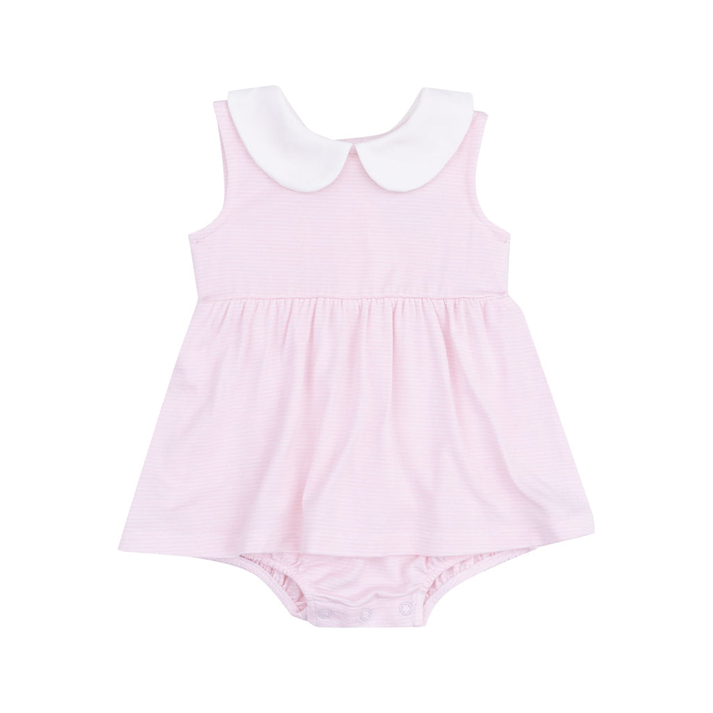 Peter Pan Collar Bubble with Skirt (Stripe Classic Pink)