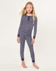 Celebrate the Festival of Lights with this classic navy and white print featuring menorahs and dreidels. A nod to timeless traditions, and a keepsake style to honor new memories as families draw near. This Long Sleeve Top and Pant Set offers a secure, snug fit, allowing freedom of movement for active little ones while providing a perfect silhouette for cooler months. Designed to coordinate with the whole family, the set offers superior comfort, durability, and style points.