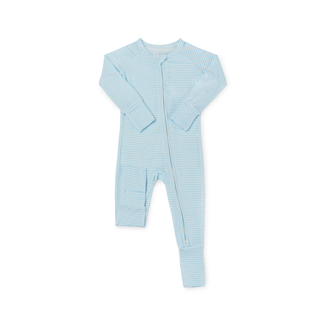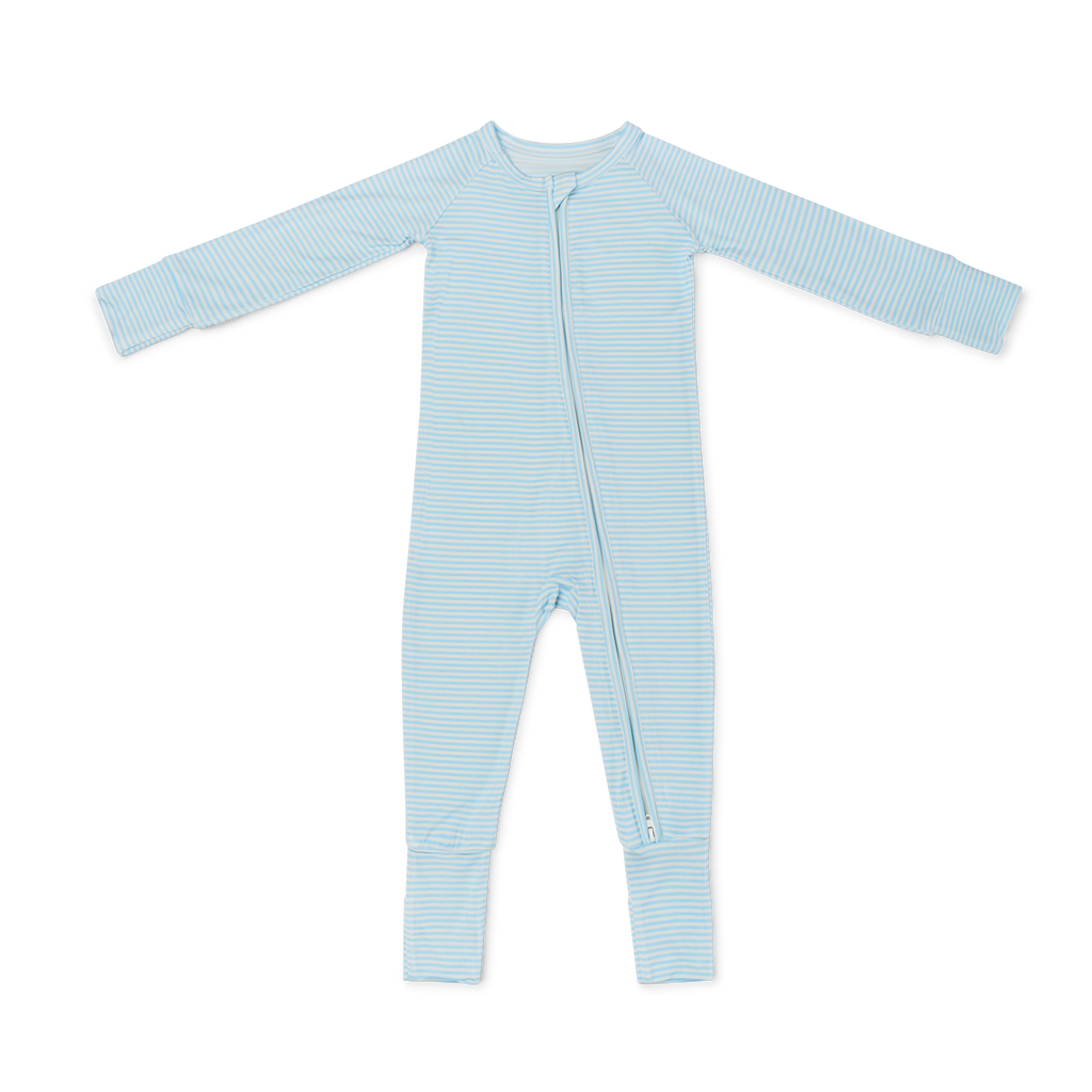 The boys sleeper is crafted from our signature buttery-soft bamboo fabric. Perfect for sensitive skin, the seasonless, tag free fabric ensures year-round comfort. Thoughtful touches like fold-over mittens (up to size 3-6 months) and foot cuffs keep little ones cozy and scratch-free, while the double zipper makes diaper changes effortlessly easy.