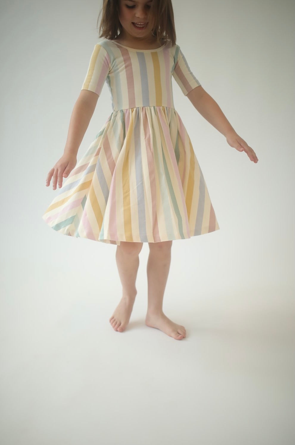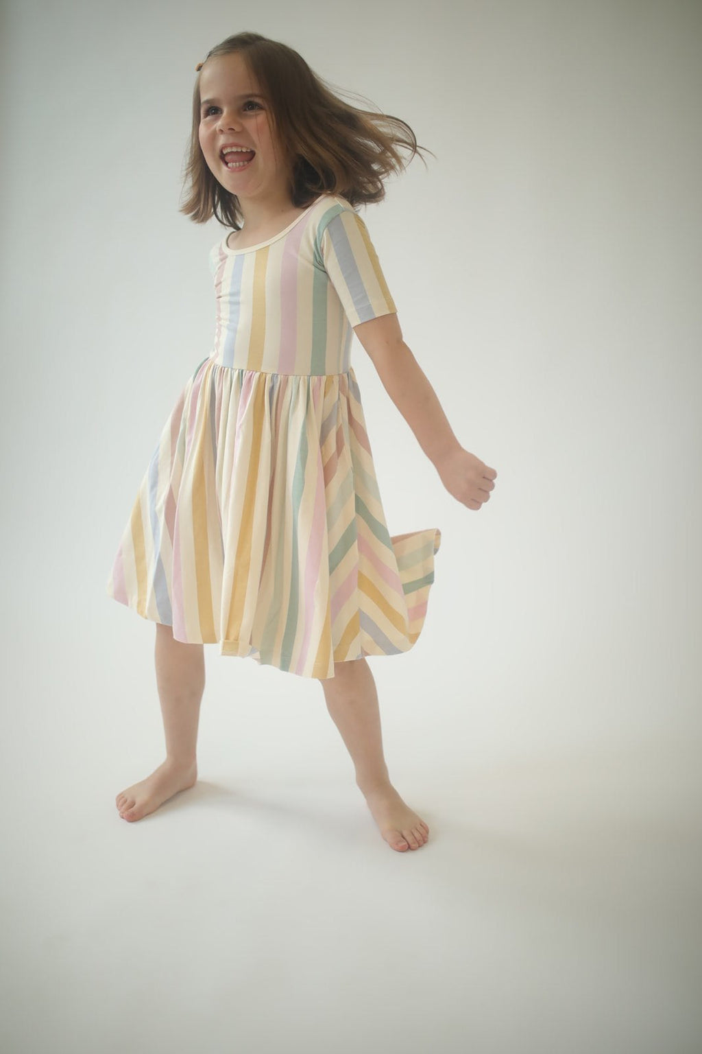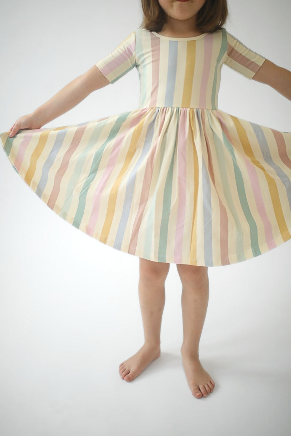 Short Sleeve Twirl Dress (Pastel Stripes)