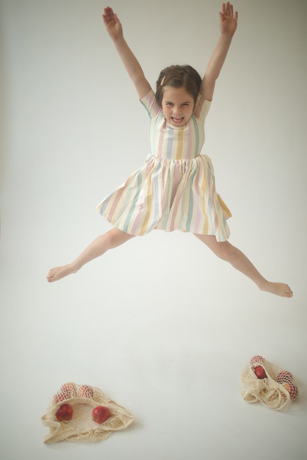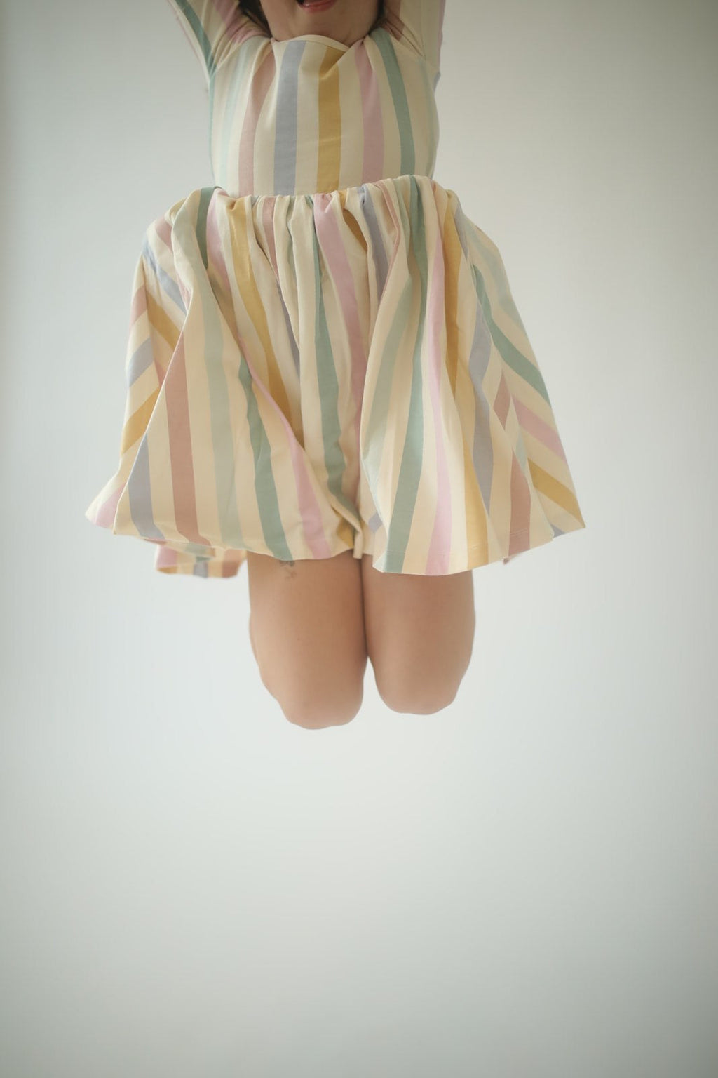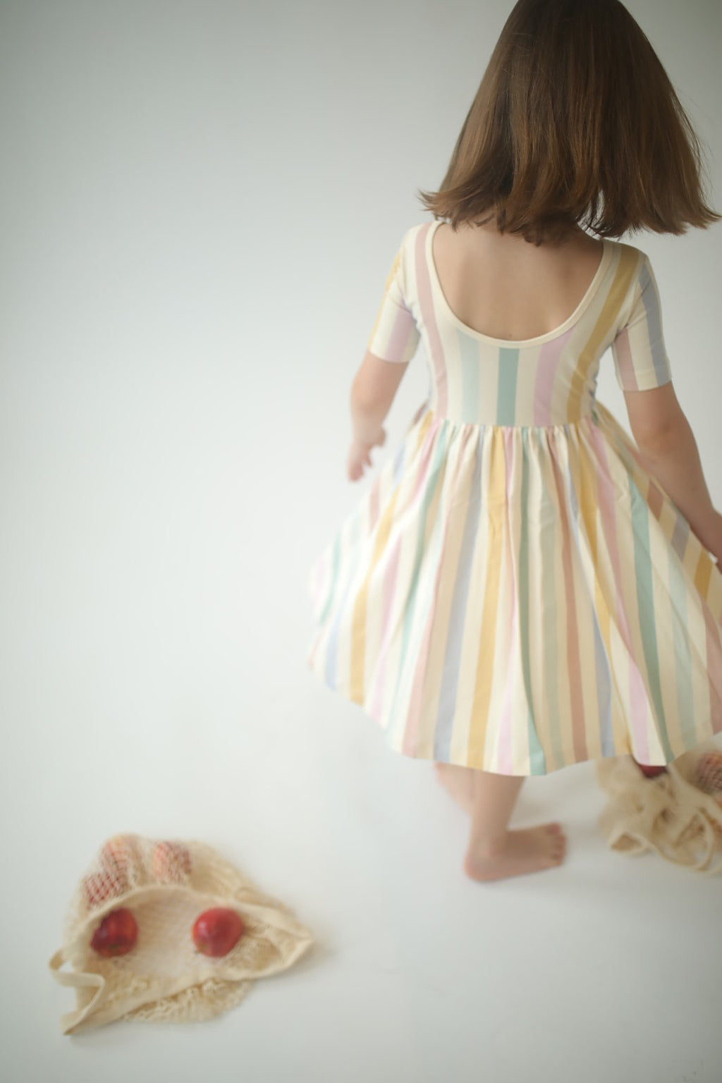 Short Sleeve Twirl Dress (Pastel Stripes)