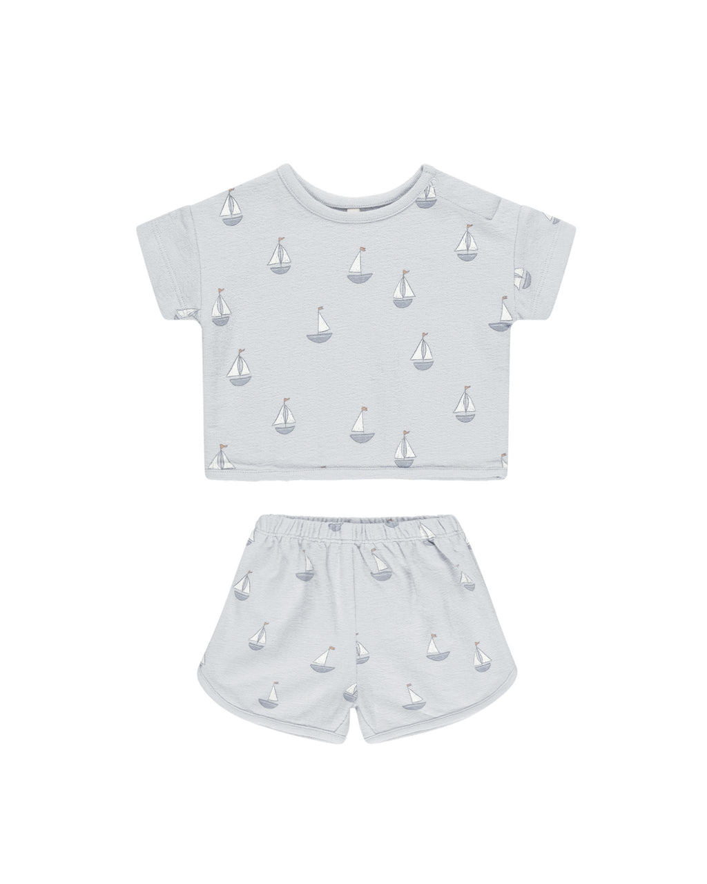Featuring our 'sailboats' print on our 'sky' hue. Set sail for summer adventures in this cool style.