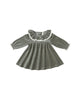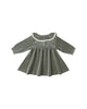 Our Velour Baby Dress features an empire waist dress with long sleeves and a cute ruffled collar. Featuring our ‘forest’ colorway.