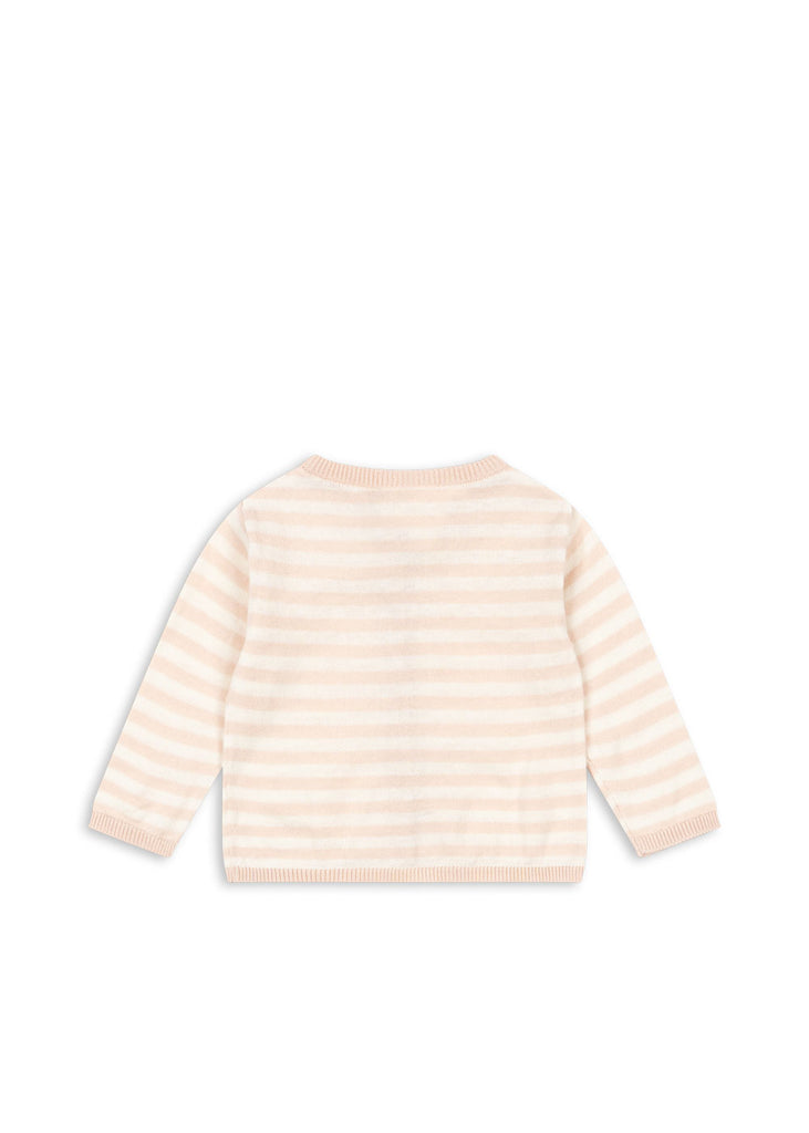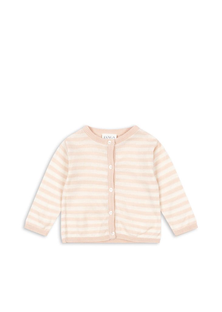 Light cardigan in a delicate pointelle knit pattern. Made from 100% organic cotton that is soft and breathable, and designed with scallop edges and mother of pearl buttons in front.
