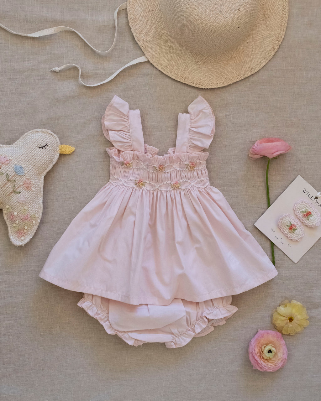 A delightful pink set with pretty embroidered details. Perfect for active kids who love to play and dance. Soft and comfy all day long!