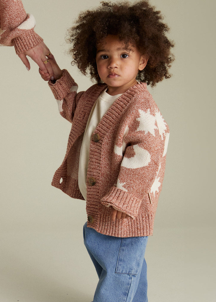 Our multi-time best-selling organic cotton knit cardigan; the ultimate in comfort and style, the one that started it all. In a warm, rich russet tone with smoky tortoiseshell buttons and our iconic over-sized fit – this premium unisex knitwear piece is carefully crafted using our signature twisted yarn technique