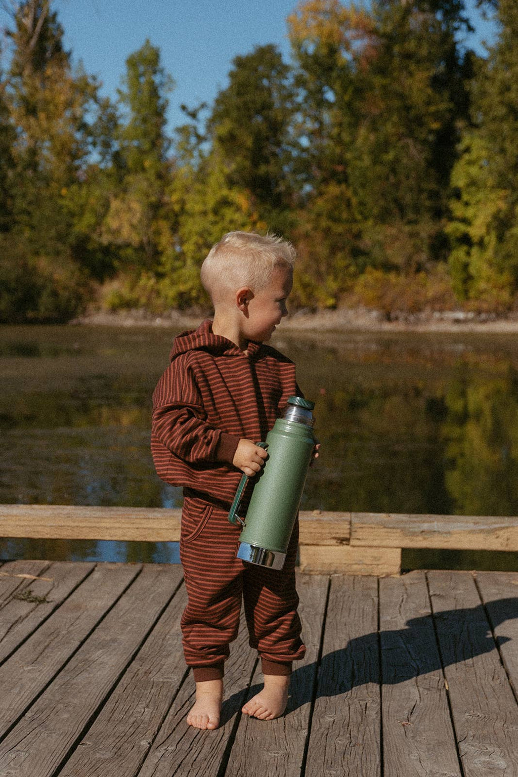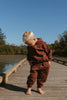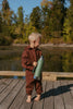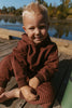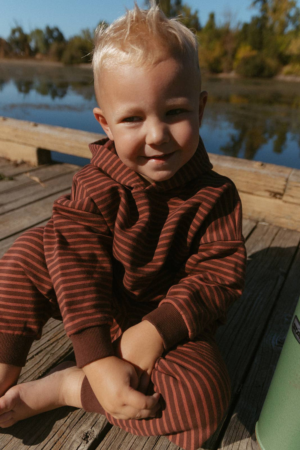 Dress your baby and toddler in the Jamie Set in Thin Bitter Chocolate Stripe for cozy, playful days! Made from soft brushed-back French terry fabric, this oversized hooded sweatshirt and drawstring pants combo keeps little ones comfy and free to move. Perfect for naps, playtime, or family adventures!