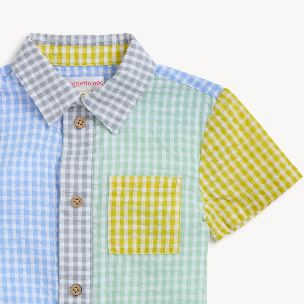 Our cotton woven Collared Shirt & Shorts Set can be a casual or dressy outfit, with innovative magnetic closures (instead of buttons) that make dressing quick, easy, and fun. Crafted in a lightweight cotton woven with a puckered texture, this set is comfy for every day yet special for family gatherings.
