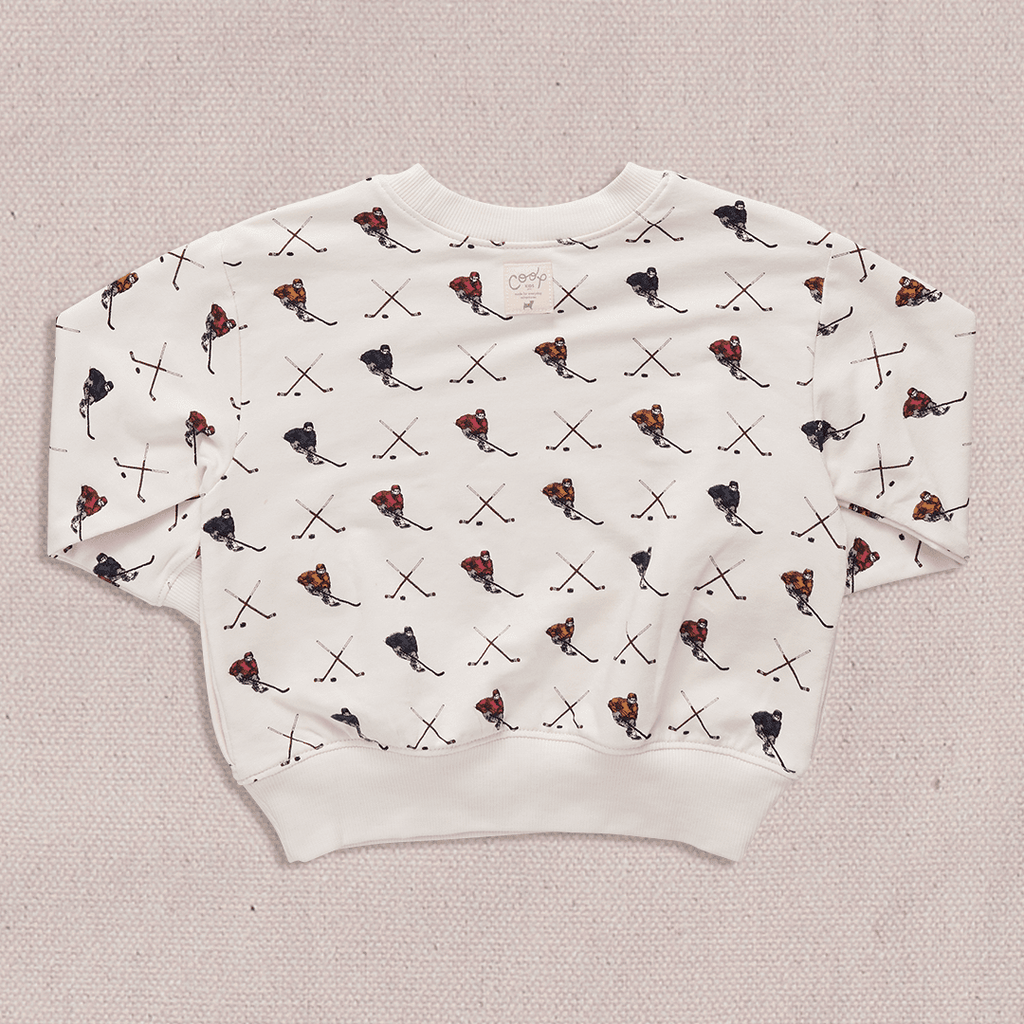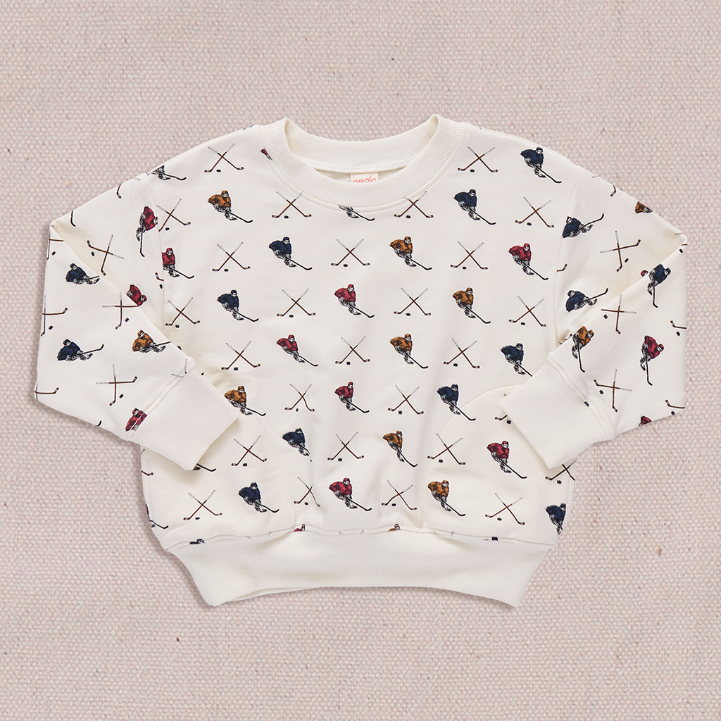 Your little scout will never want to take off our super cozy Play Sweatshirt crafted in our oh-so-soft French Terry. Always in season and available in a please mom, I-want-them-all collection of solids and vintage-inspired and holiday prints, this perfect weight layer features roomy side pockets (right-sized for marbles, matchbox cars and pet rocks), and ribbed cuffs and neck for a snug fit. Our signature Coop Kids logo patch pops up on the center back. Wear with our French Terry Trail Jogger for an all day adventure look.