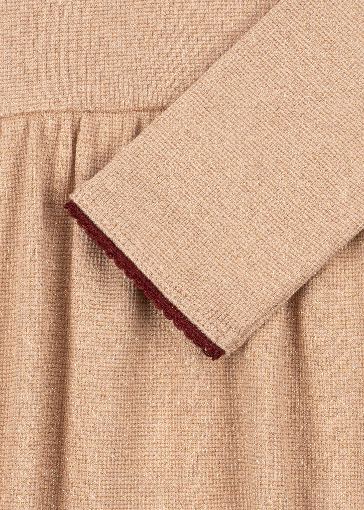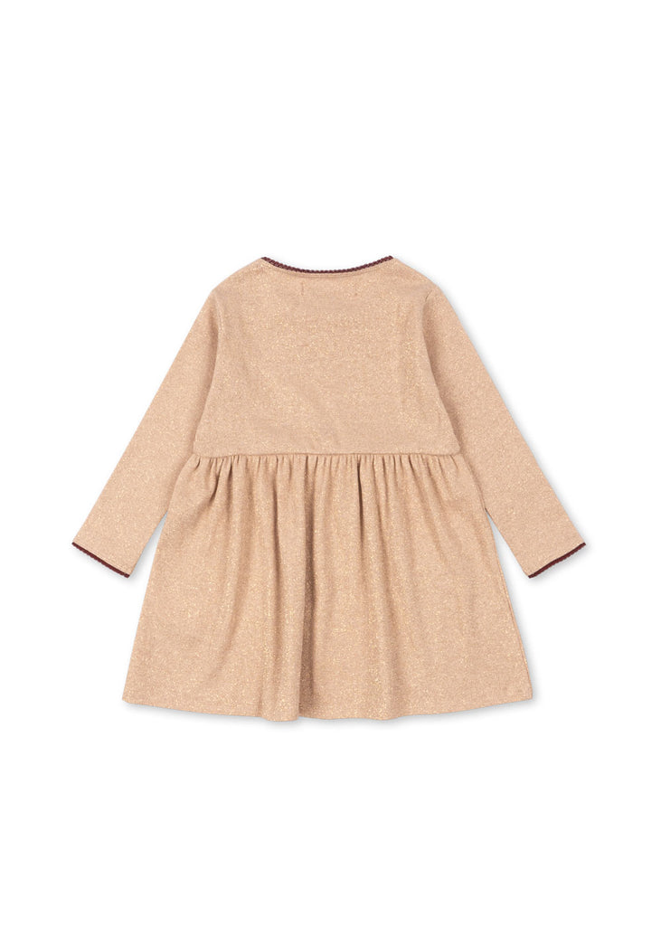 Soft dress made in a stretchy cotton fabric. Woven with a shiny lurex thread that adds a sparkling finish to this everyday piece.