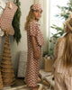 Our Ruffle Pajamas are the perfect blend of cute and cozy. This woven pajama set features a charming ruffle-collar top paired with wide-leg pants designed with an elastic waistband for maximum comfort. So soft and stylish, you’ll want to lounge in them all morning long!