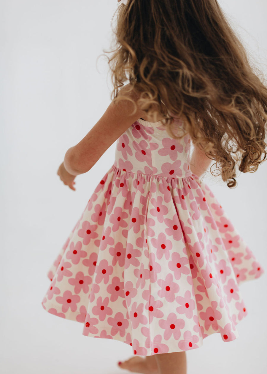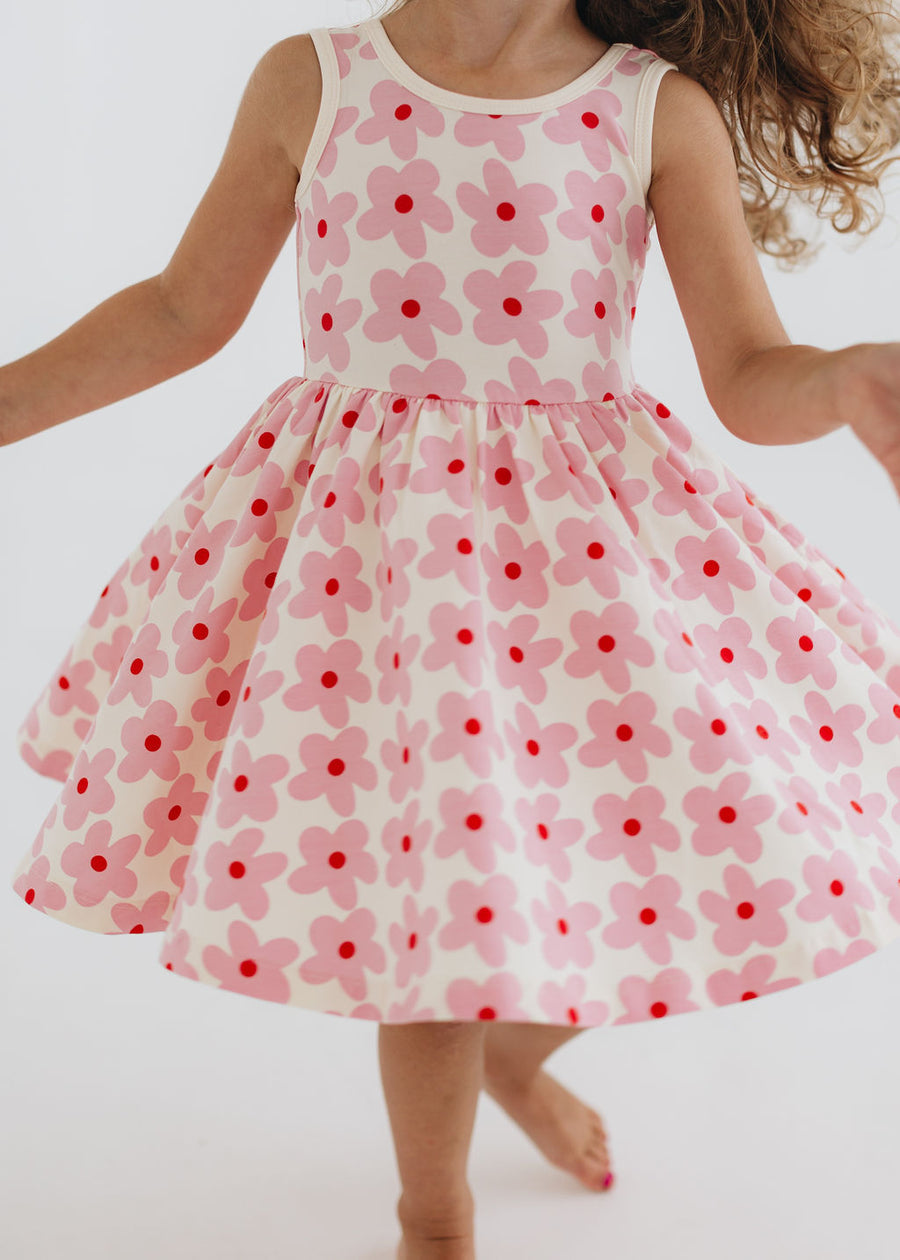 Sleeveless Twirl Dress (Pink Daisies)