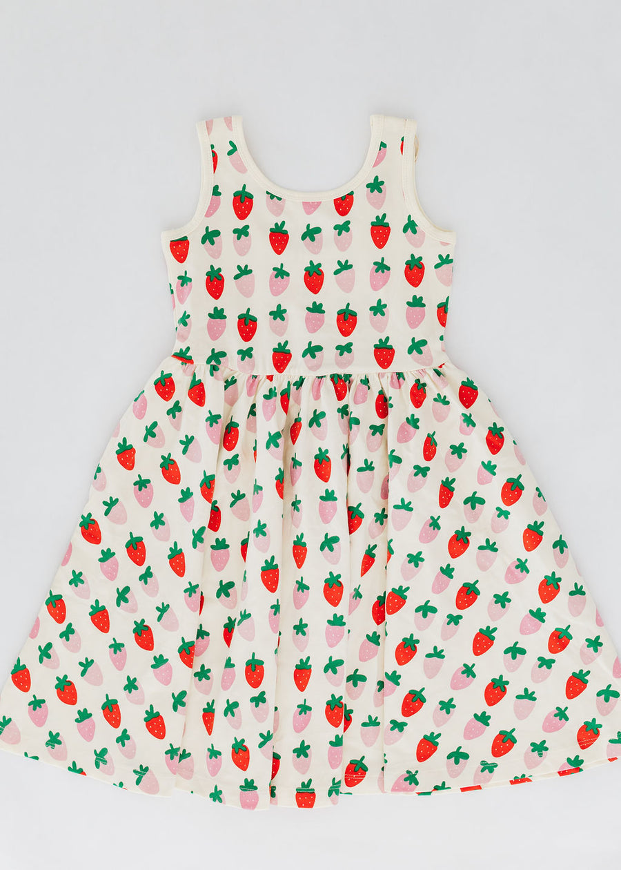 Our signature Good Apples dress is made from stretchy-soft organic cotton and designed with a ballet-inspired silhouette. It features a fitted bodice, a graceful scooped back, pockets for all their treasures, and a full circle skirt for endless twirling.