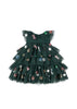 Festive tulle dress adorned with holiday themed sequin attachements. Designed with a voluminous skirt and soft layers of tulle all over. Lined with soft cotton.